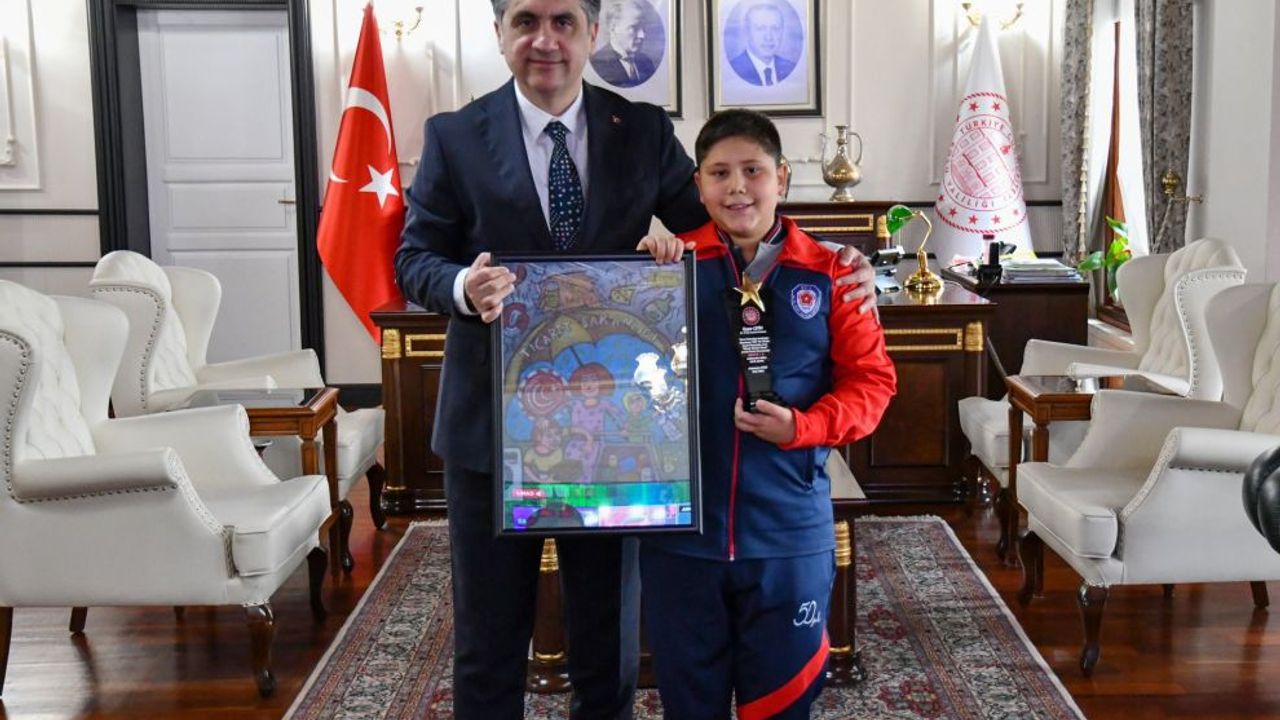 Bolu 50. Yıl İzzet Baysal Ortaokulu öğrencisi Uygar Çetin, bin 600 eser arasından Türkiye birincisi olarak elde ettiği dereceyle ilimizi gururlandırdı; Ticaret Bakanlığı’nın 19 Aralık 2025 tarihinde gerçekleştirdiği 28. Geleneksel Tüketici Ödülleri Töreni kapsamında ödülünü Ticaret Bakanı Prof. Dr. Ömer Bolat’tan aldı. Aynı yarışmada Bolu İl Birincisi olan Milli Egemenlik Ortaokulu öğrencisi Buğlem Serpil Çakır da büyük bir başarıya imza attı. Öğrencilerimizin yetişmesinde emeği geçen öğretmenlerine ve ailelerine teşekkür eden Vali Abdulaziz Aydın, Öğrencileri tebrik ederek başarılarının devamını diledi; bilinçli tüketici farkındalığının küçük yaşlarda edinilmesinin kıymetli olduğunu vurguladı.