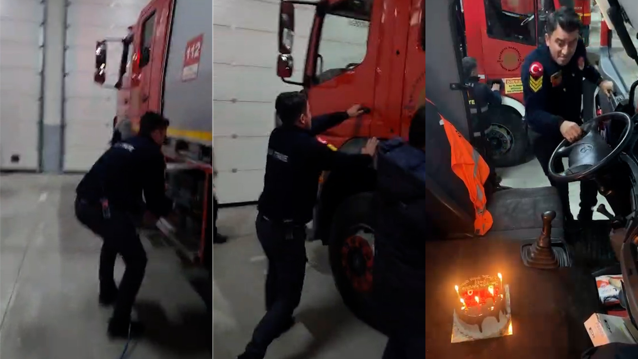 İhbarı duyar duymaz büyük bir panik yaşayan İlhami Özer, “Anam anam, benim ev!” diyerek hızla itfaiye aracına yöneldi. Aracın kapısını açıp direksiyon başına geçmek üzereyken karşılaştığı manzara ise onu hem şaşırttı hem de sevince boğdu. Direksiyon başında mumlarla süslenmiş doğum günü pastasını gören Özer, yaşadığı kısa süreli şokun ardından rahat bir nefes aldı.