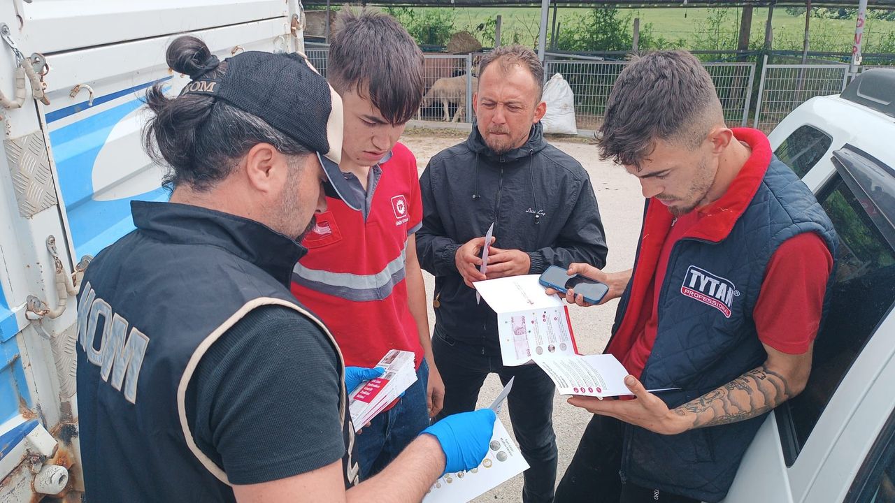 Kurban Bayramı’na sayılı günler kala Bolu’da, hayvan satışının yapıldığı kurban pazarlarında sahte para ile dolandırıcılık olaylarının önüne geçmek amacıyla bilgilendirme İl Emniyet Müdürlüğü Kaçakçılık ve Organize Suçlarla Mücadele (KOM) Şube Müdürlüğü ekipleri tarafından çalışması gerçekleştirildi. KOM Şube Müdürlüğü ekipleri, kurbanlık satan vatandaşları sahte para konusunda bilgilendirerek, dikkat edilmesi gereken hususlar hakkında uyarılarda bulundu. Ekipler, sahte paranın nasıl ayırt edileceğini uygulamalı olarak anlatarak satıcılara broşür dağıttı. Vatandaşların mağduriyet yaşamaması için dikkatli olmaları istenirken, şüpheli durumlarda vakit kaybetmeden emniyet birimlerine ihbarda bulunmaları gerektiği vurgulandı.