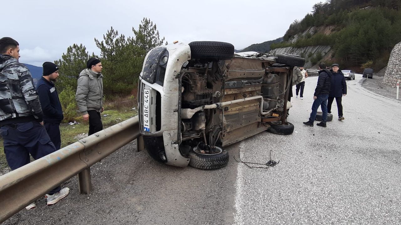 Mudurnu-Nallıhan kara yolu Aynalıkaya mevkisinde, cenaze töreninden döndüğü öğrenilen H.Ç. idaresindeki 14 ABC 446 plakalı hafif ticari araç, karşı yönden gelen R.K. yönetimindeki 54 AHY 943 plakalı otomobille çarpıştı. Kazada, çarpışmanın etkisiyle devrilen hafif ticari araçtaki N.Ç. ve V.D. yaralandı. Sürücüler ise kazayı yara almadan atlattı.