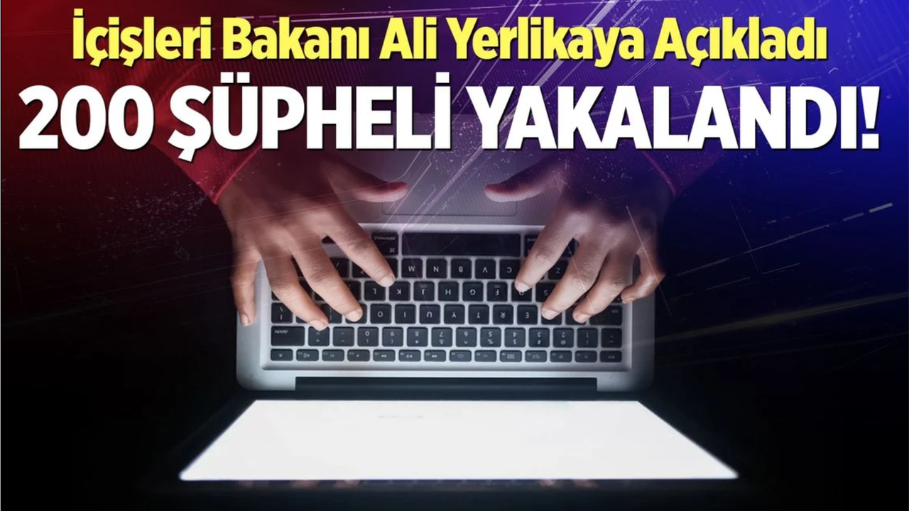 Bakan Yerlikaya sosyel medya hesabından yaptığı açıklamada, Siber Suçlarla Mücadele kapsamında son 5 gündür polis ekipleri tarafından düzenlenen operasyonlarda 200 şüphelinin yakalandığını belirterek, "Bu kişiler aracılığıyla işlenebilecek dolandırıcılık, çocuk müstehcenliği ve yasa dışı bahis gibi siber suçlardan vatandaşlarımızın maddi ve manevi zarar görmesini engelledik" ifadesini kullandı.