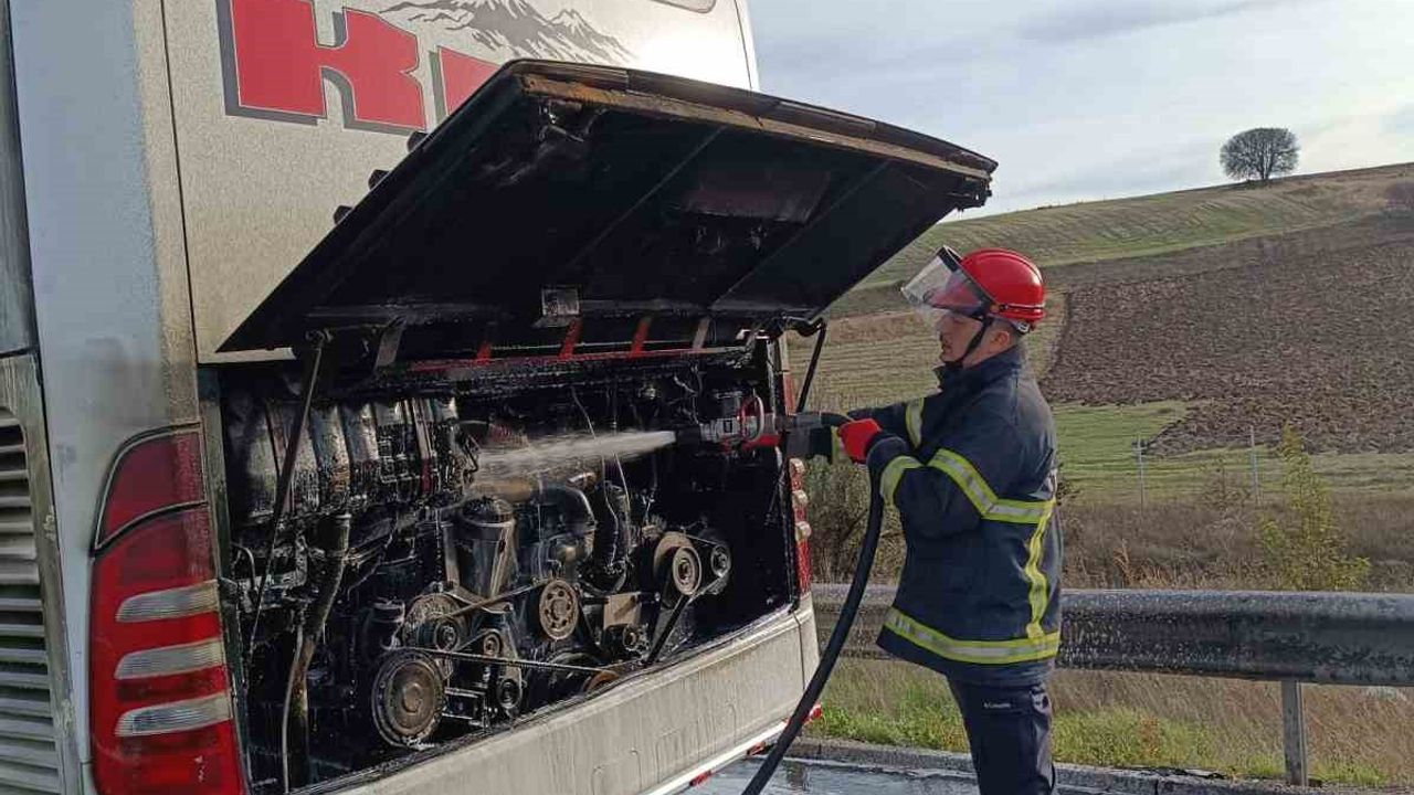 Olay, TEM Otoyolu’nun Bolu geçişinde Yeniçağa ilçesi mevkiinde meydana geldi. Edinilen bilgiye göre, Ankara yönüne seyreden yolcu otobüsünün motor kısmından dumanlar yükselmeye başladı. Durumu fark eden sürücü, aracı emniyet şeridine çekip 112 Acil Çağrı Merkezi’ni aradı. İhbarla kısa sürede bölgeye gelen itfaiye ekiplerince söndürülen yangında aracın motor kısmında hasar meydana geldi. Yangının çıkış nedeni araştırılıyor.